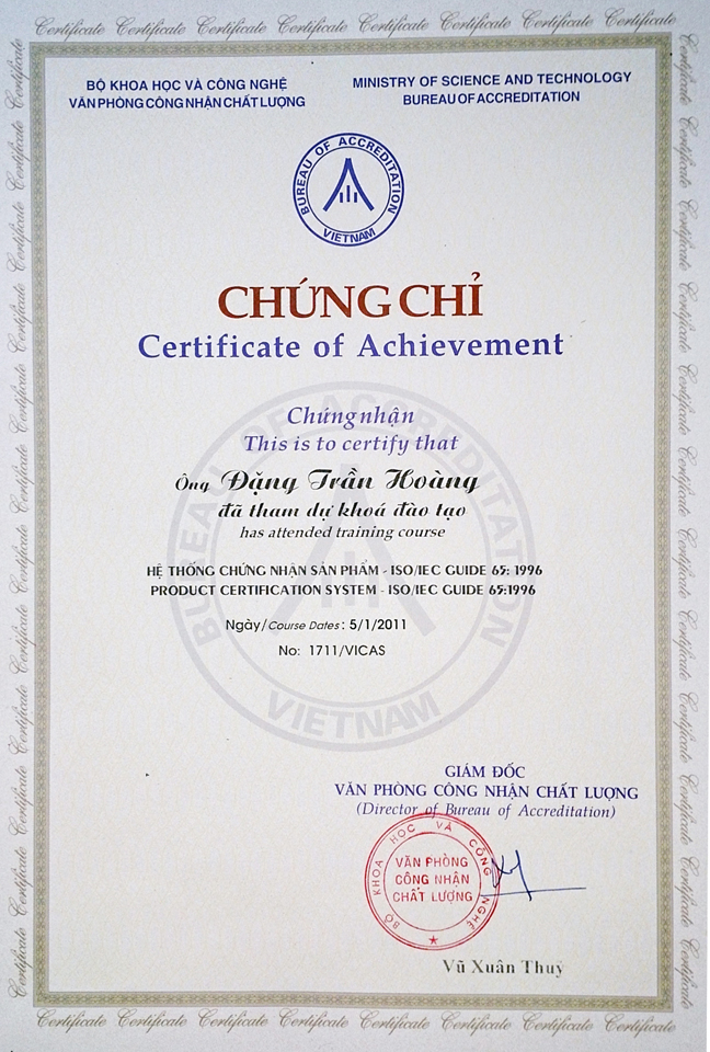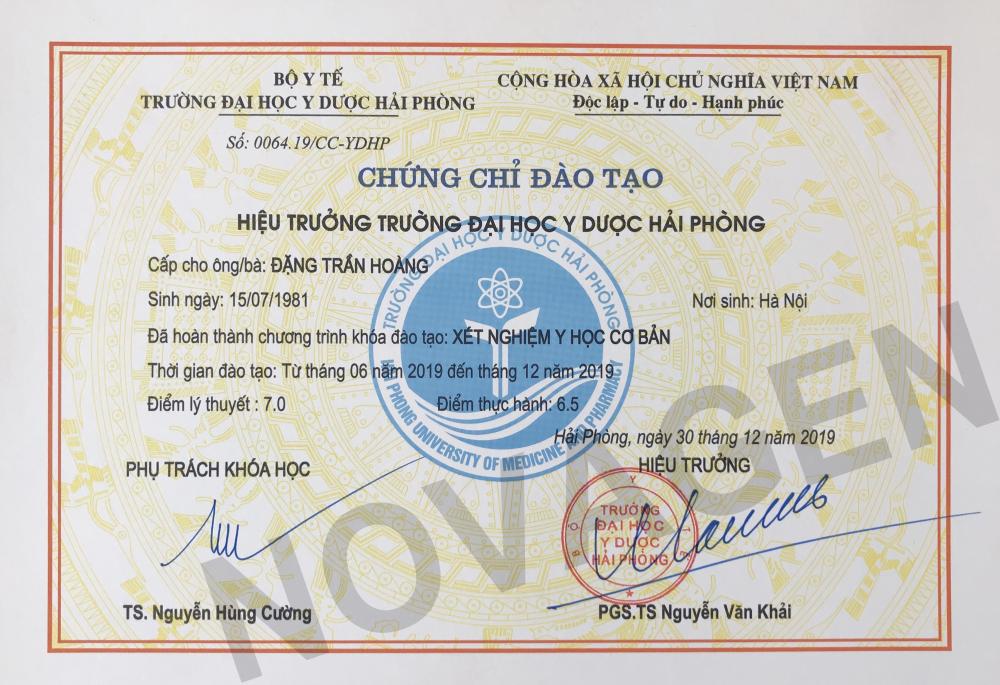 Chứng chỉ xét nghiệm Y Học của Mr. Đặng Trần Hoàng